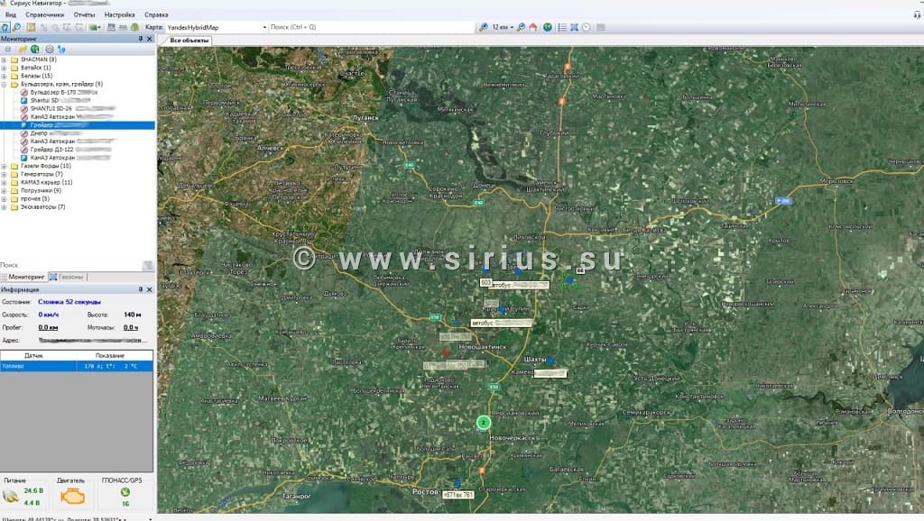 Задачи: контроль местоположения и топлива, контроль моточасов.